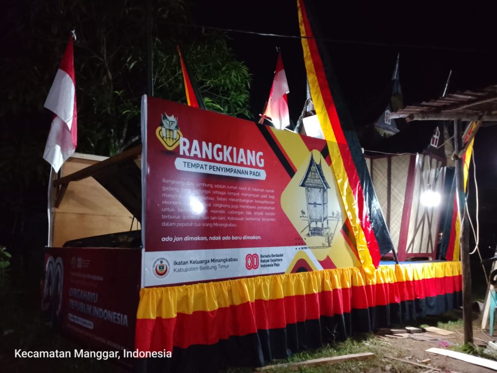 Khusus untuk Ikatan Keluarga Minang, akan menampilkan Rangkiang sebagai pilihan tampil tahun 2025 ini di acara pawai pembangunan Kabupaten Belitung Timur 2025 yang dihiasi beberapa ornamen lainnya.